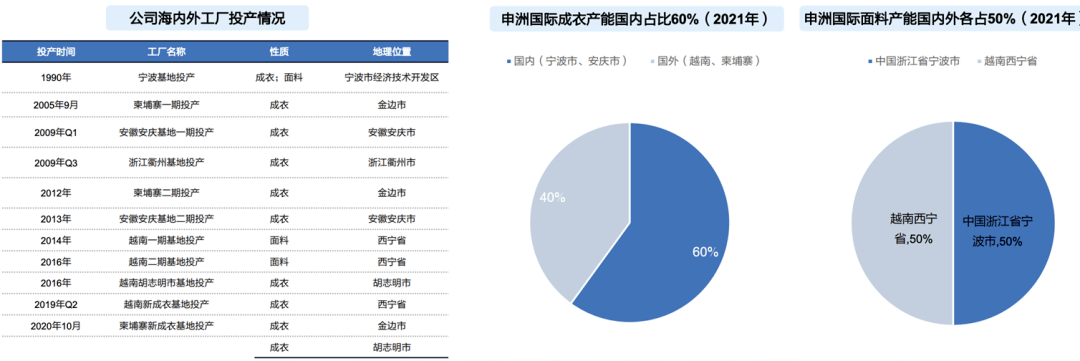 欧美在2018年开始就对从中国进口的产品实行了不同程度的限制,申洲国际深知,如果还要继续做这个业务,就得通过全球设厂来分散此风险。所以它在过去10年时间里,不断在亚洲进行布局,目前在东南亚拥有6个厂区,在亚洲除中国以外的地方也有4个厂区。这些地区的出口并没有被欧美限制,而且部分地区如柬埔寨还能享受免关税优惠,所以到了2018年,申洲国际不断在柬埔寨和越南投资建厂,一方面分为了散风险,另一方面是对其最大的客户负责,不让他们流失。
