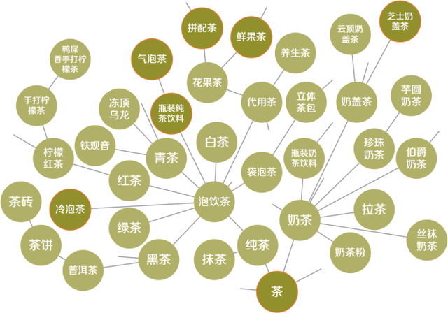 茶饮行业品类分化树分析(不同顾客心智中的品类分化认知差异巨大,本图仅作示意)
