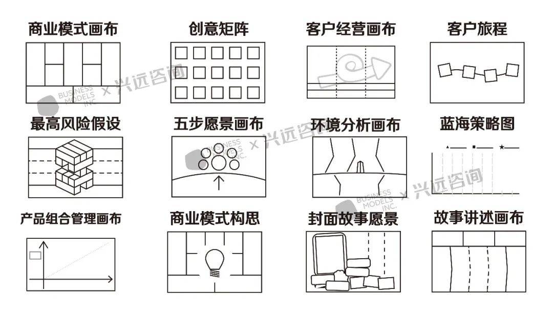 不止是源自Business Models Inc.的国际版权内容体系,在兴远咨询多年的商业设计与创新实践经验中,对体系中的工具、案例和应用场景做了更多本土化的优化,更符合中国企业的实际业务增长场景。