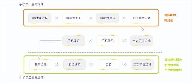 按万物新生的算法认为,每台二手手机在交易后就意味着它获得了"新生",被二手消费者当作新机使用,那么一手消费者使用期间的均摊碳排放,就相当于完全被省下来。平均下来,一台二手手机碳减排量为30.4千克,相当于减少一台新机72.6%的碳排放。万物新生2021年回收3100万台手机,实现的碳减排约有46.4万吨。万物新生建立的产业链碳核算系统,对于循环经济和低碳经济具有重要意义。