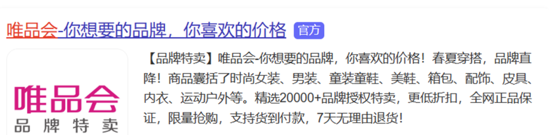 图4:百度搜索唯品会(图片为原创,引用请注明出处)