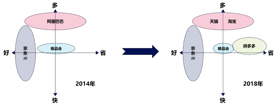 图5:唯品会2014年与2018年的市场地位(图片为原创,引用请注明出处)