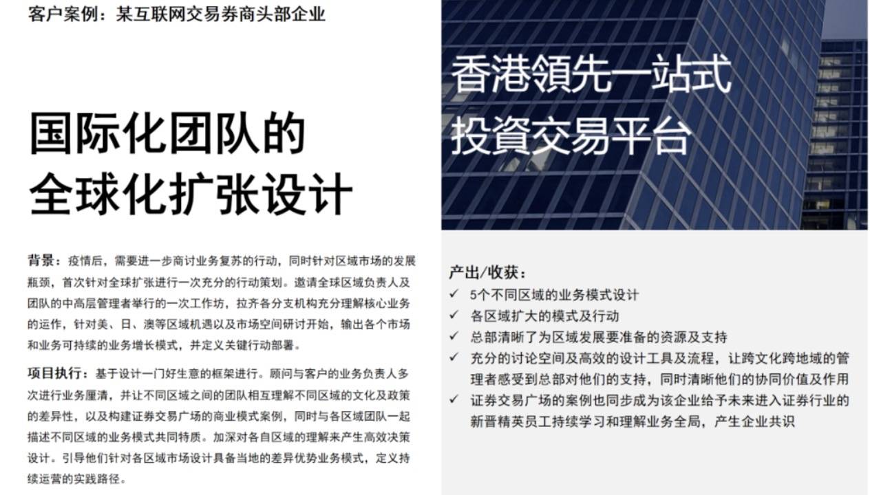 4. 真正解决企业业务难题的咨询服务:包括以客户为中心的产品策略设计、突破现有瓶颈的商业创新战略、创造第二曲线的创新业务孵化以及构建创新型组织等。