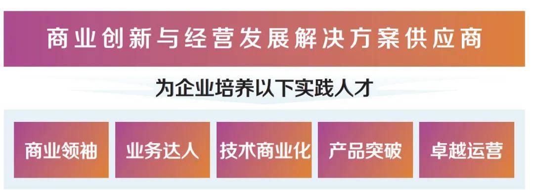3. 助力业务领军人成长的学习项目:包括提升管理者商业领导力的商业行动学习项目、提升创新氛围和孵化创新业务的创新加速营,以及在企业内部传播商业火种的课程内化与教练培养;