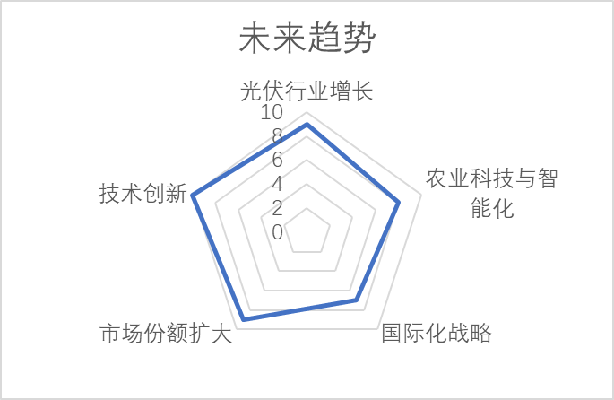 以下从五个维度来展示未来趋势:“光伏行业增长”、“农业科技与智能化”、“国际化战略”、“市场份额扩大”和“技术创新”。如图7所示。