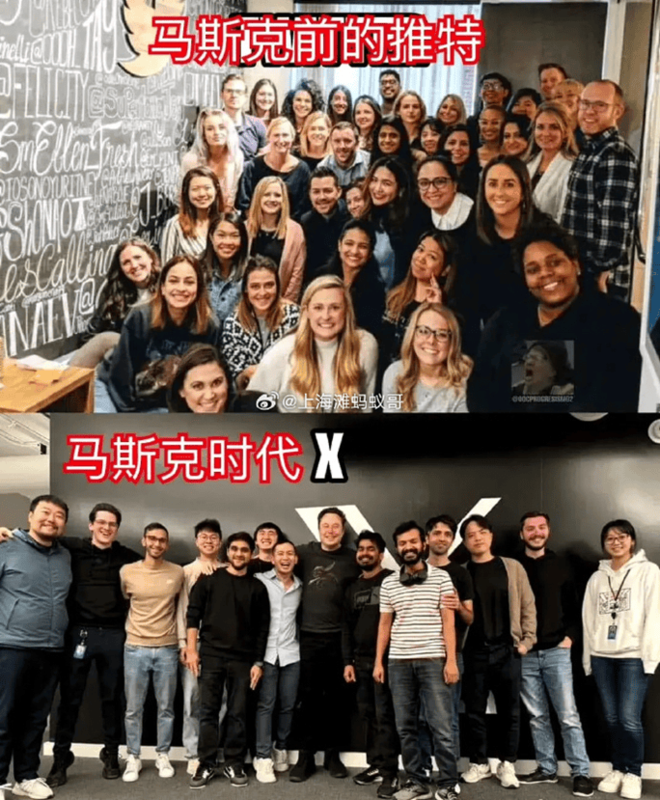 ● 裁员:裁减50%以上员工,削减成本,提高执行效率。图4推特与X的员工。
