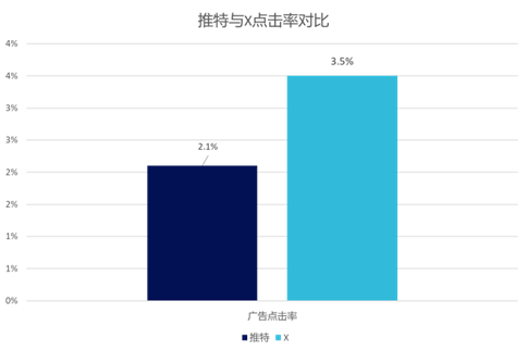 效果:广告点击率提升至3.5%,较推特时期的2.1%显著提高。图8是推特与X广告点击率。