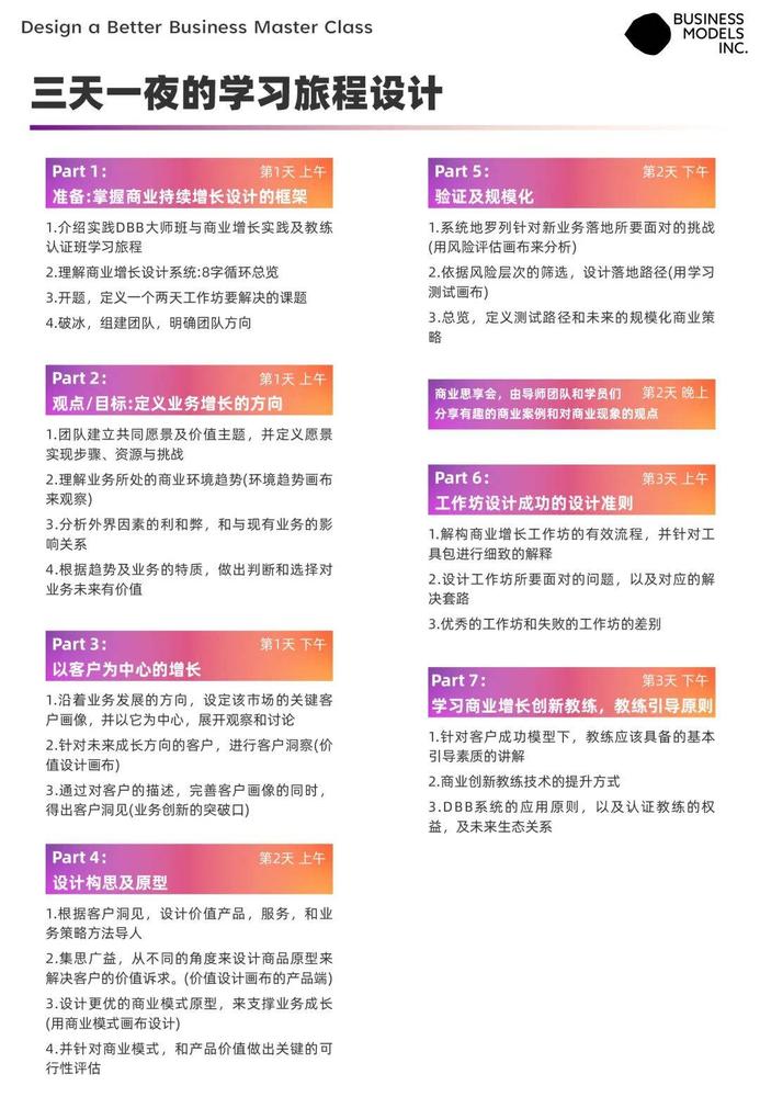 ● Design a Better Business Master Class设计一门好生意大师班认证教练可参加BMI中国体验课/沙龙;