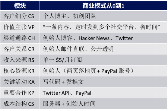 表1 Buffer的商业模式模块内容