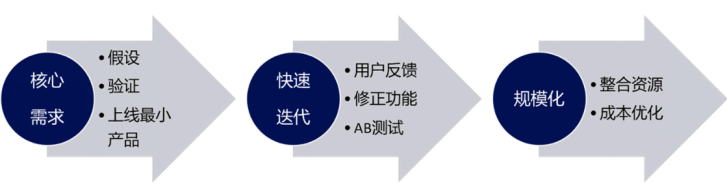 MVP验证:MVP的核心逻辑是用最小成本验证核心需求→快速迭代→规模化,如图3所示