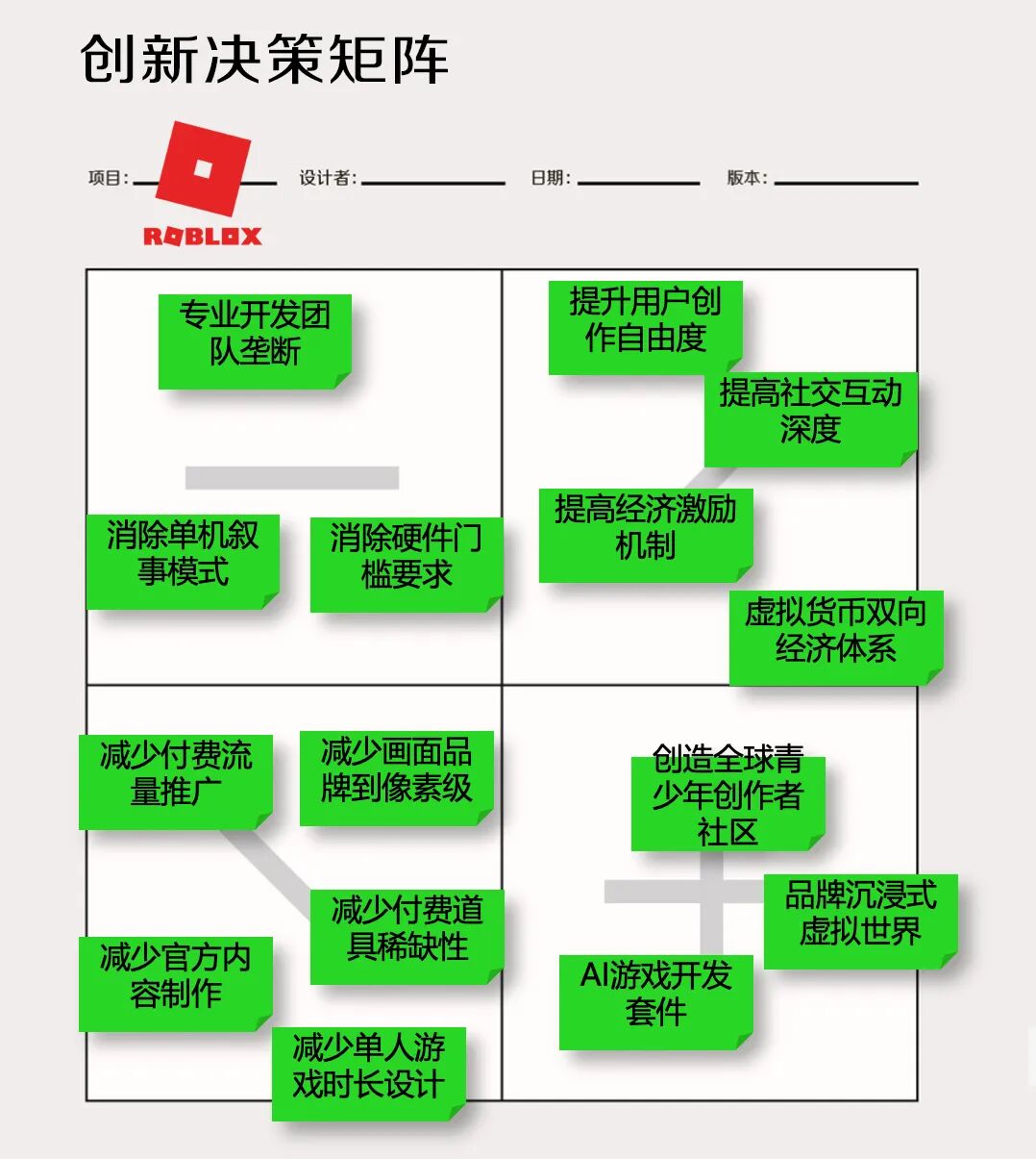 图2 创新决策矩阵:Roblox