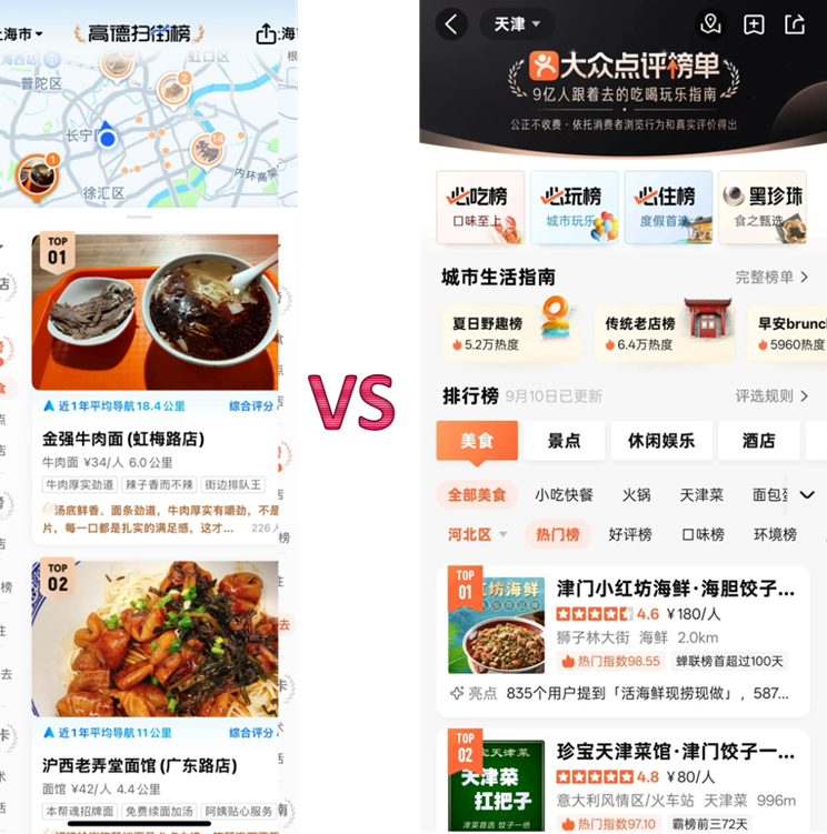 图8 高德扫街榜与美团大众点评