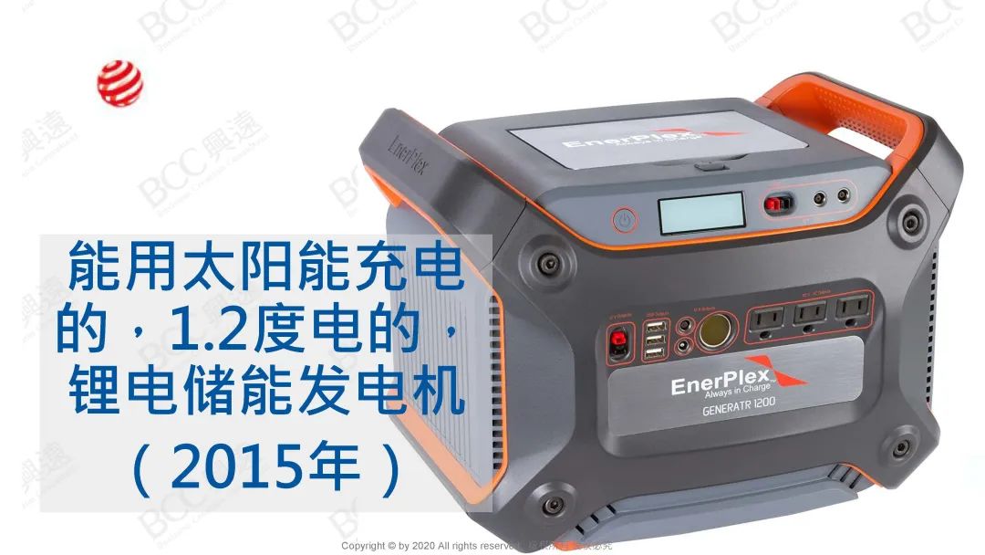 在当时的市场上,用普通储能方式的设备基本上都有100多斤的重量,基于这个挑战,我花了很多心思设计电池包,通过分析产品常见的安全问题,以及从它实际的应用场景出发,利用各种新技术,使这款产品在面世的时候,重量只有其他同款设备的40%,而储存的电量是同样大小设备的3倍。所以2015年,我凭借这一项产品又拿了一项红点奖。