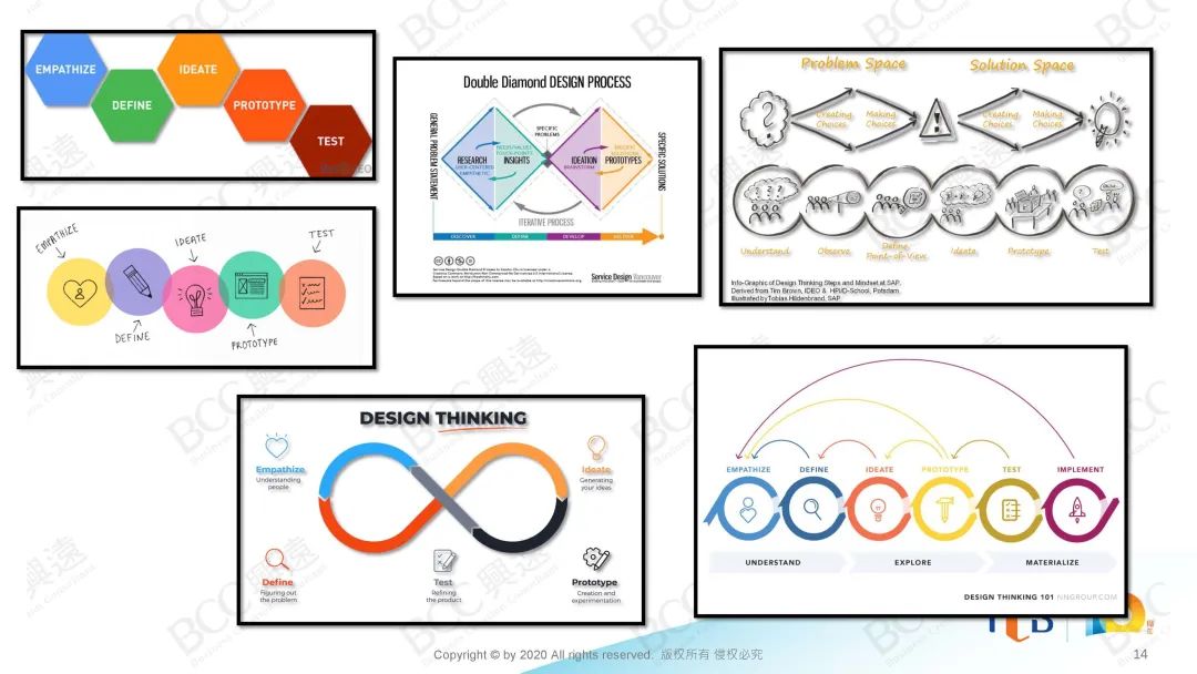 那什么是设计思维?如果你尝试着用搜索平台搜索什么是设计思维,你可以看到一大堆这些图片。